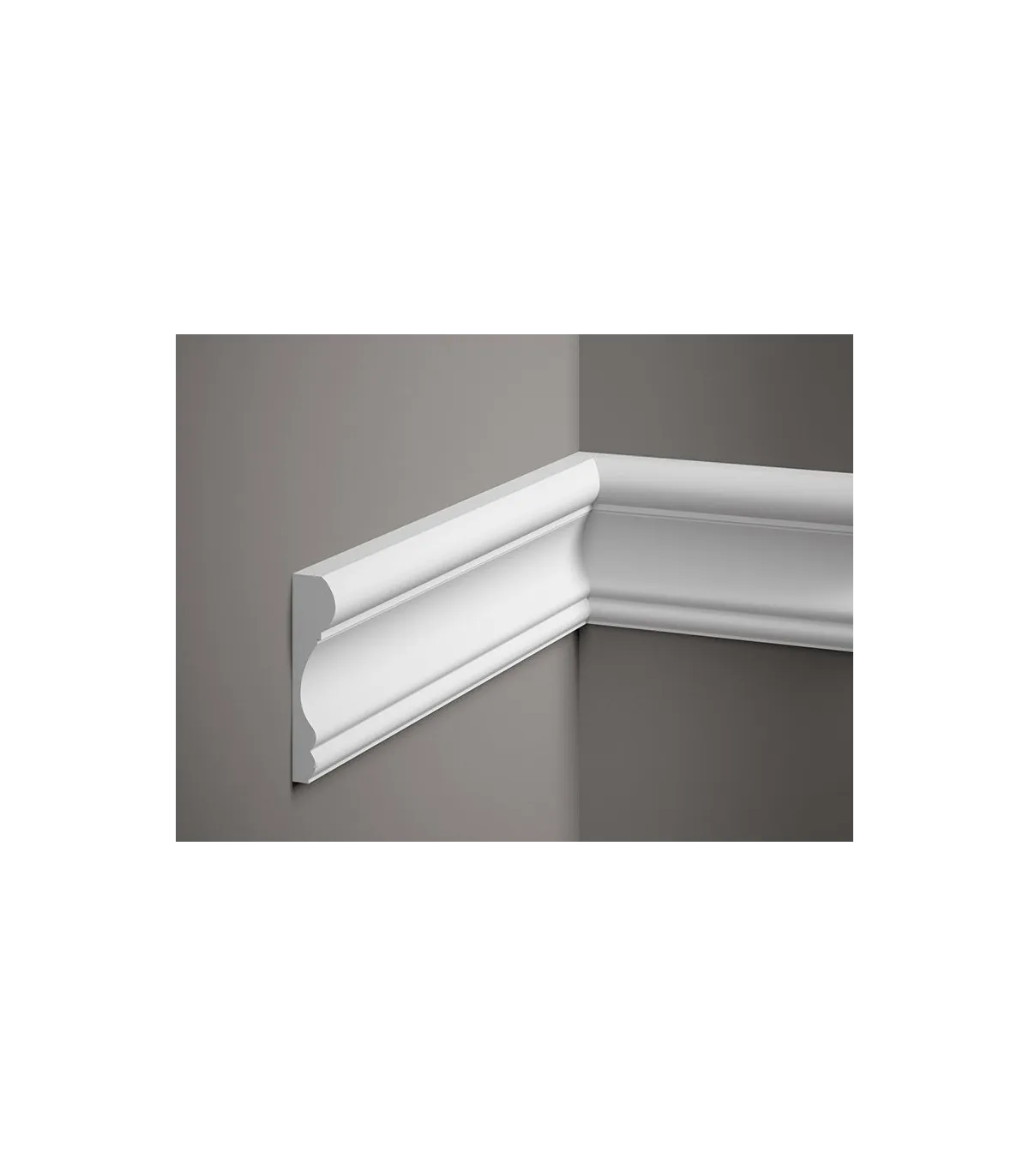 Nástěnná lišta MDD311 je minimalistický design s decentním zdobením uprostřed soklové lišty. Profil byl vyroben z extrémně lehké pěny ProFoam, která díky své hmotnosti umožňuje bezproblémovou instalaci v jakékoli výšce stěny. MDD311 bude fungovat jak jako nástěnná a odřezávací lišta, ale také jako prvek větší dekorativní kompozice. Soklová lišta má vodotěsné vlastnosti, takže není problém s její instalací v interiérech vystavených neustálému kontaktu s vlhkostí. Dobře si poradí i s UV zářením – při intenzivním slunci se nedrolí a nežloutne. Můžete si být jisti, že i po mnoha letech používání si nástěnná lišta zachová svůj bezvadný vzhled. Délka je 2,0 m.