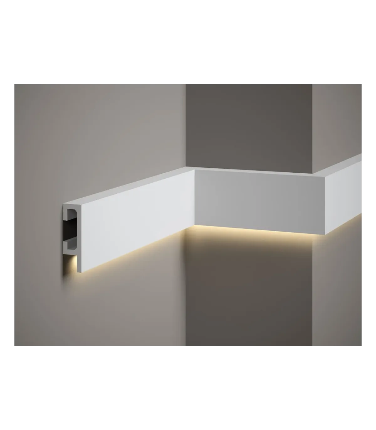 Nástěnná lišta QL019 je minimalistický design s decentním zdobením uprostřed soklové lišty. Profil byl vyroben z extrémně lehké pěny ProFoam, která díky své hmotnosti umožňuje bezproblémovou instalaci v jakékoli výšce stěny. QL019 bude fungovat jak jako nástěnná a odřezávací lišta, ale také jako prvek větší dekorativní kompozice. Soklová lišta má vodotěsné vlastnosti, takže není problém s její instalací v interiérech vystavených neustálému kontaktu s vlhkostí. Dobře si poradí i s UV zářením – při intenzivním slunci se nedrolí a nežloutne. Můžete si být jisti, že i po mnoha letech používání si nástěnná lišta zachová svůj bezvadný vzhled. Délka je 2,0 m.