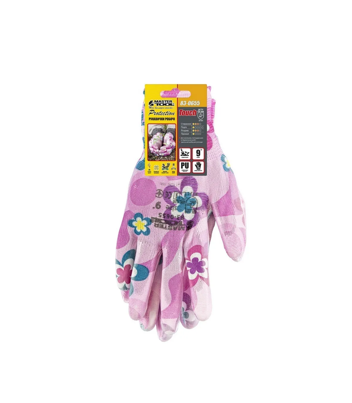 Rukavice pracovní MASTERTOOL pletené bezešvé s PU povlakem Fialová 9" 83-0655